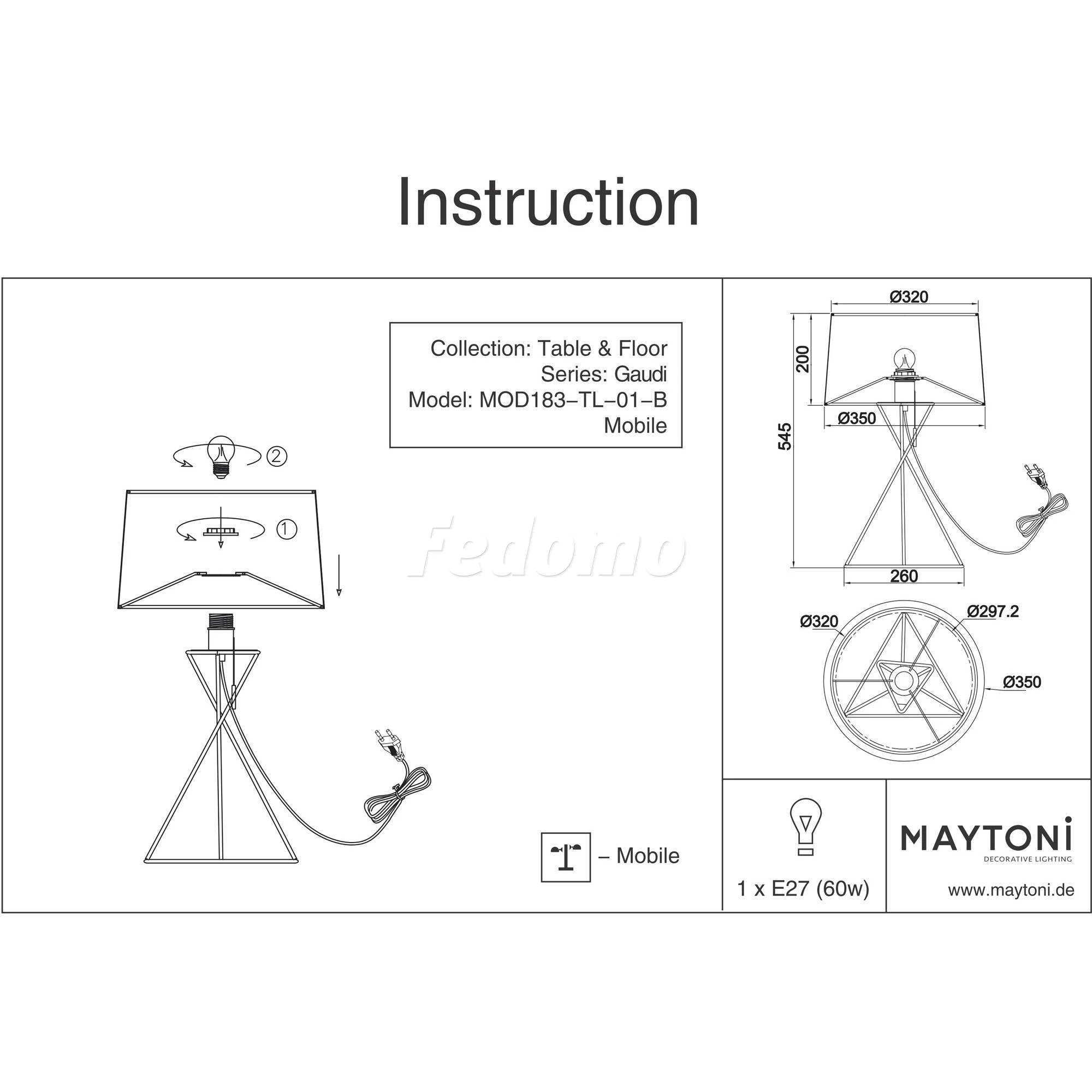 Интерьерная настольная лампа на треноге MOD183-TL-01-B из серии Gaudi от компании Maytoni будет удачно смотреться на столе в гостиной, оформленной в современном стиле. Интерьерная лампа имеет 1 абажур и 1 лампочку с цоколем E27, мощностью 60W и напряжением 220V. Модель устанавливается , есть возможность подключения диммера. Основной материал и цвет арматуры - черный металл, материал абажура - пластик. Габариты изделия: высота - 545 мм. Лампочки в комплект не входят. Лучшая цена и условия доставки на Maytoni MOD183-TL-01-B в интернет-магазине Fedomo.ru.