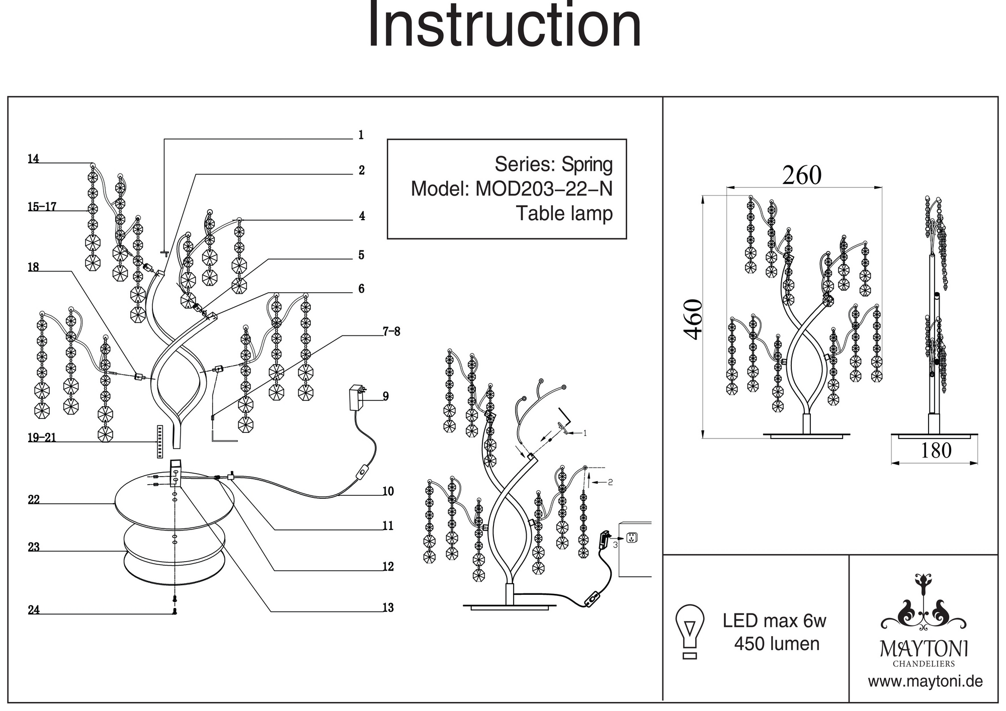 Интерьерная настольная лампа MOD203-22-N из серии Spring от компании Maytoni будет удачно смотреться на столе в гостиной, спальне, оформленных в стиле арт-деко. Светодиодная интерьерная лампа с ветками имеет 2 рассеивателя и 1 лампочку с мощностью 6W и напряжением 220V. Модель устанавливается на основание. Основной материал и цвет арматуры - цвета никеля металл. Габариты изделия: ширина - 260 мм, высота - 460 мм. Лучшая цена и условия доставки на Maytoni MOD203-22-N в интернет-магазине Fedomo.ru.