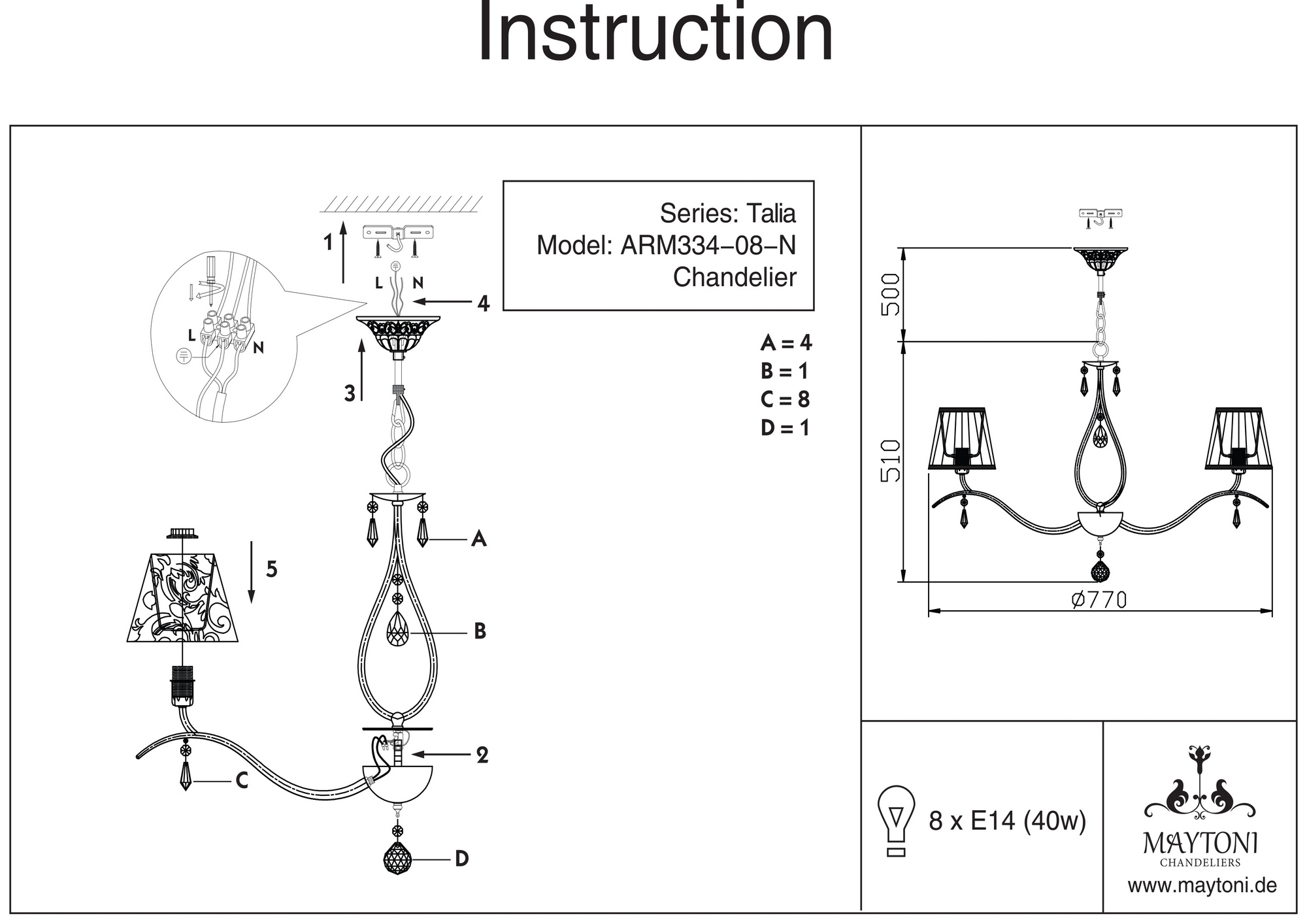 Люстра подвесная MOD334-PL-08-N из серии Talia от компании Maytoni устанавливается на металлический крюк. Классическая люстра украшена хрусталем и прекрасно подойдет в качестве источника основного света для гостиной, спальни, кабинета. Основной цвет модели - белый, материал арматуры - металл. Люстра имеет 8 абажуров со свечением вверх, материал изготовления - ткань. Модель оснащена цоколем E14 (8xE14), имеет 8 лампочек с общей мощностью 320W и напряжением 220V. Светильник поддерживает подключение диммера. Габариты: высота - 1010 мм, диаметр - 770 мм. Лампочки в комплект не входят. Лучшая цена и условия доставки на Maytoni MOD334-PL-08-N в интернет-магазине Fedomo.ru.
