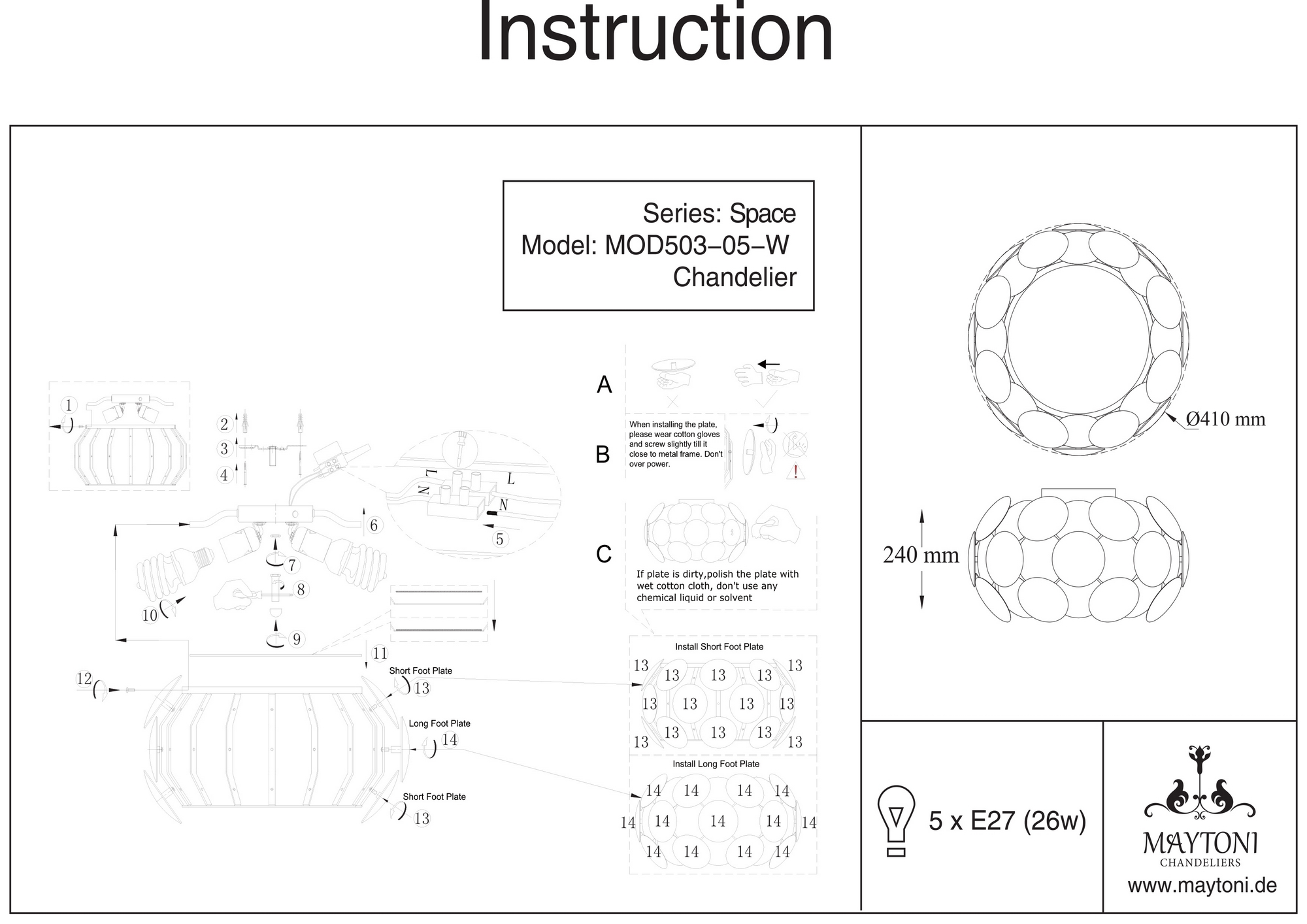 Люстра потолочная MOD503-05-W из серии Modern 10 от компании Maytoni устанавливается на монтажную пластину. Современная люстра в форме шара прекрасно подойдет в качестве источника основного света для гостиной, кафе, кухни, оформленных в стиле арт-деко. Основной цвет модели - белый, материал арматуры - металл. Люстра имеет 1 плафон со свечением вниз, материал изготовления - металл. Модель оснащена цоколем E27, имеет 5 лампочек с общей мощностью 130W и напряжением 220V. Светильник поддерживает подключение диммера. Габариты: диаметр - 410 мм. Лучшая цена и условия доставки на Maytoni MOD503-05-W в интернет-магазине Fedomo.ru.