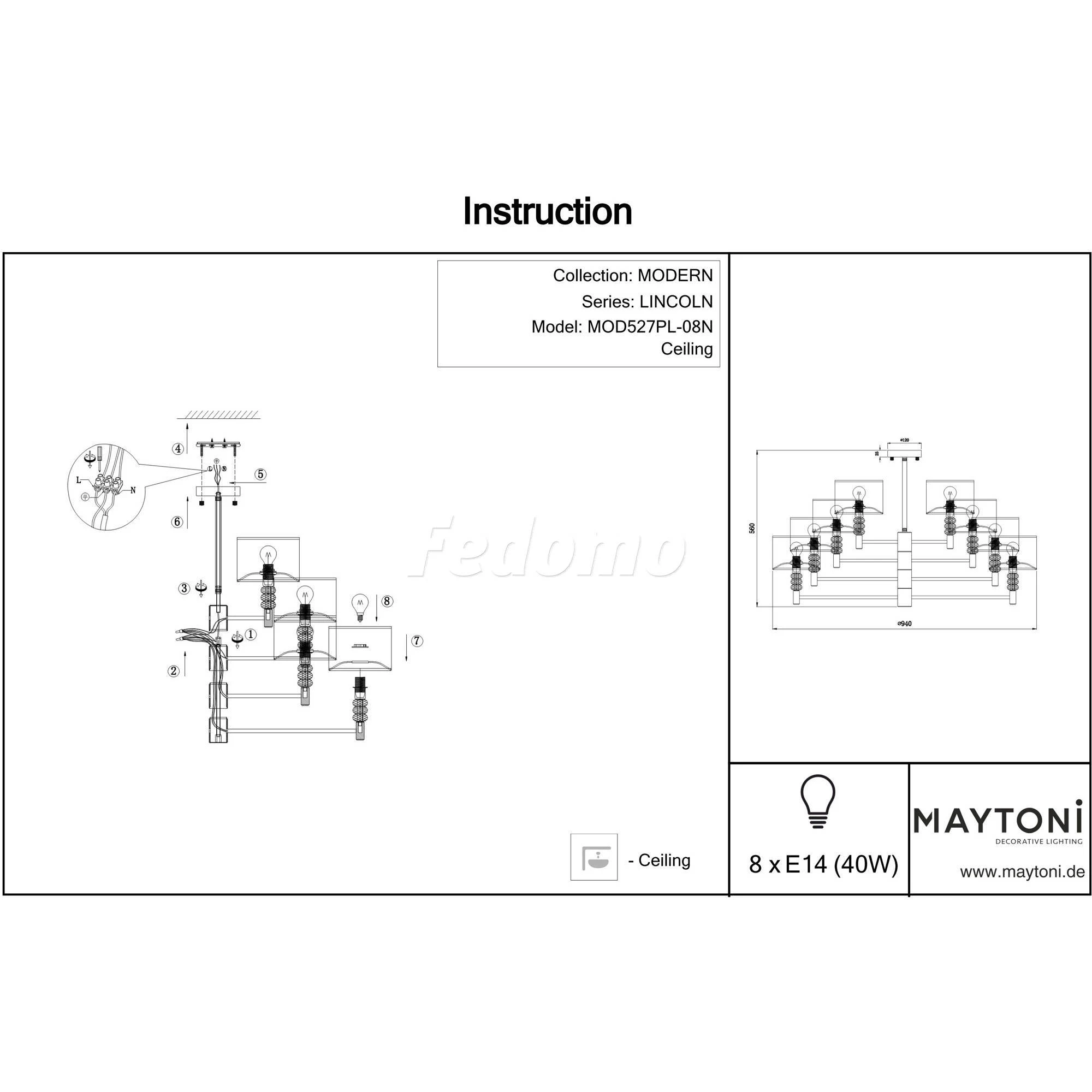 Люстра потолочная каскадная MOD527PL-08N из серии Lincoln от компании Maytoni устанавливается на монтажную пластину. Люстра прекрасно подойдет в качестве источника основного света для гостиной, кабинета, кафе, кухни, офиса, спальни, оформленных в стиле модерн. Основной цвет модели - белый, материал арматуры - металл. Люстра имеет 8 абажуров со свечением вверх, материал изготовления - матовая ткань. Модель оснащена цоколем E14 (8xE14), имеет 8 лампочек с общей мощностью 320W и напряжением 220V. Светильник поддерживает подключение диммера. Габариты: высота - 535 мм, диаметр - 940 мм. Лампочки в комплект не входят. Лучшая цена и условия доставки на Maytoni MOD527PL-08N в интернет-магазине Fedomo.ru.
