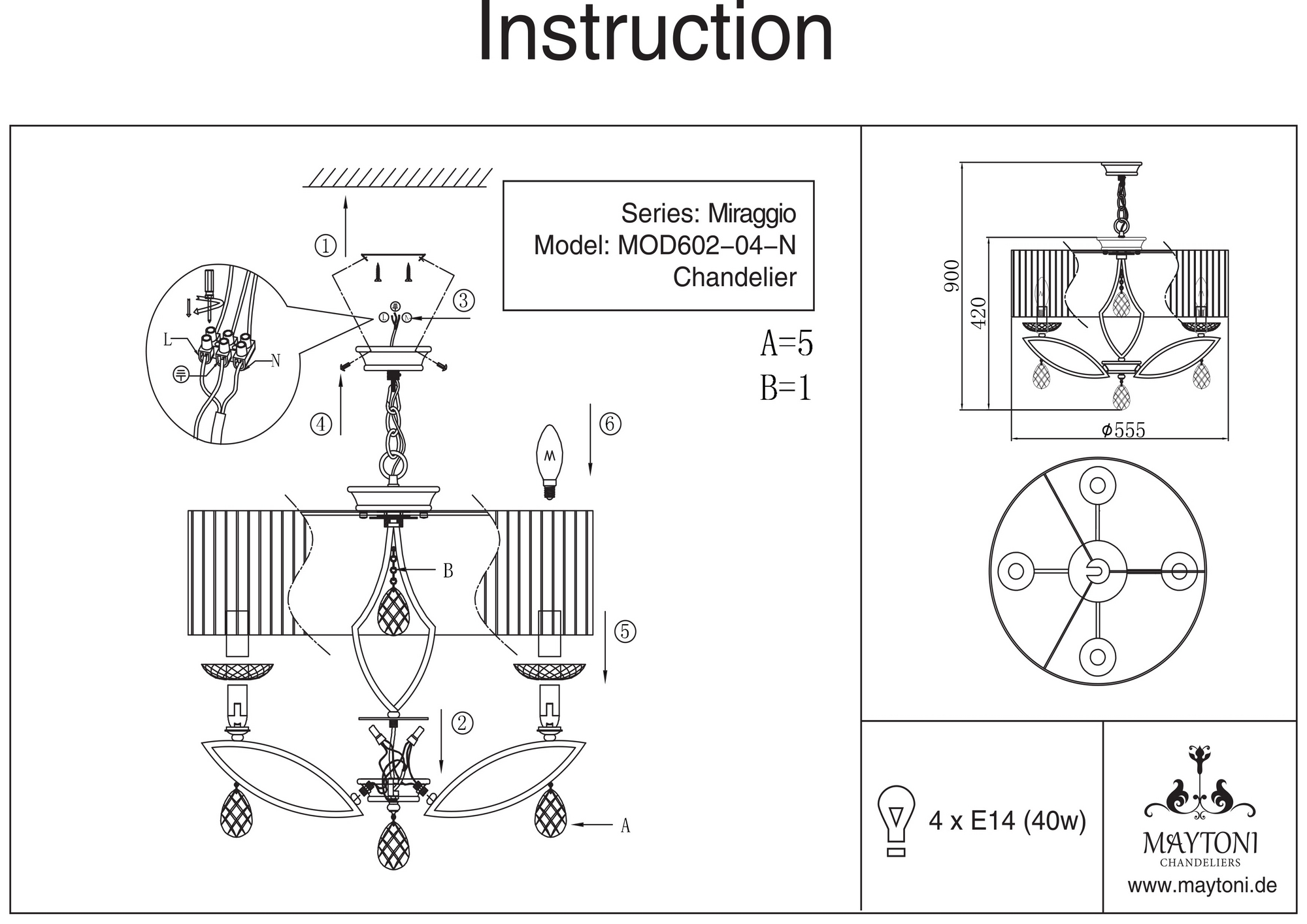 Люстра 2 в 1 потолочная и подвесная MOD602-04-N из серии Miraggio от компании Maytoni устанавливается на монтажную пластину. Люстра прекрасно подойдет в качестве источника основного света для гостиной, спальни, кабинета, оформленных в стиле модерн, арт-деко. Основной цвет модели - белый, материал арматуры - металл. Люстра имеет 1 абажур, материал изготовления - ткань. Модель оснащена цоколем E14 (4xE14), имеет 4 лампочки с общей мощностью 160W и напряжением 220V. Светильник поддерживает подключение диммера. Габариты: высота - 950 мм, диаметр - 555 мм, длина подвеса - 400 мм. Лампочки в комплект не входят. Лучшая цена и условия доставки на Maytoni MOD602-04-N в интернет-магазине Fedomo.ru.