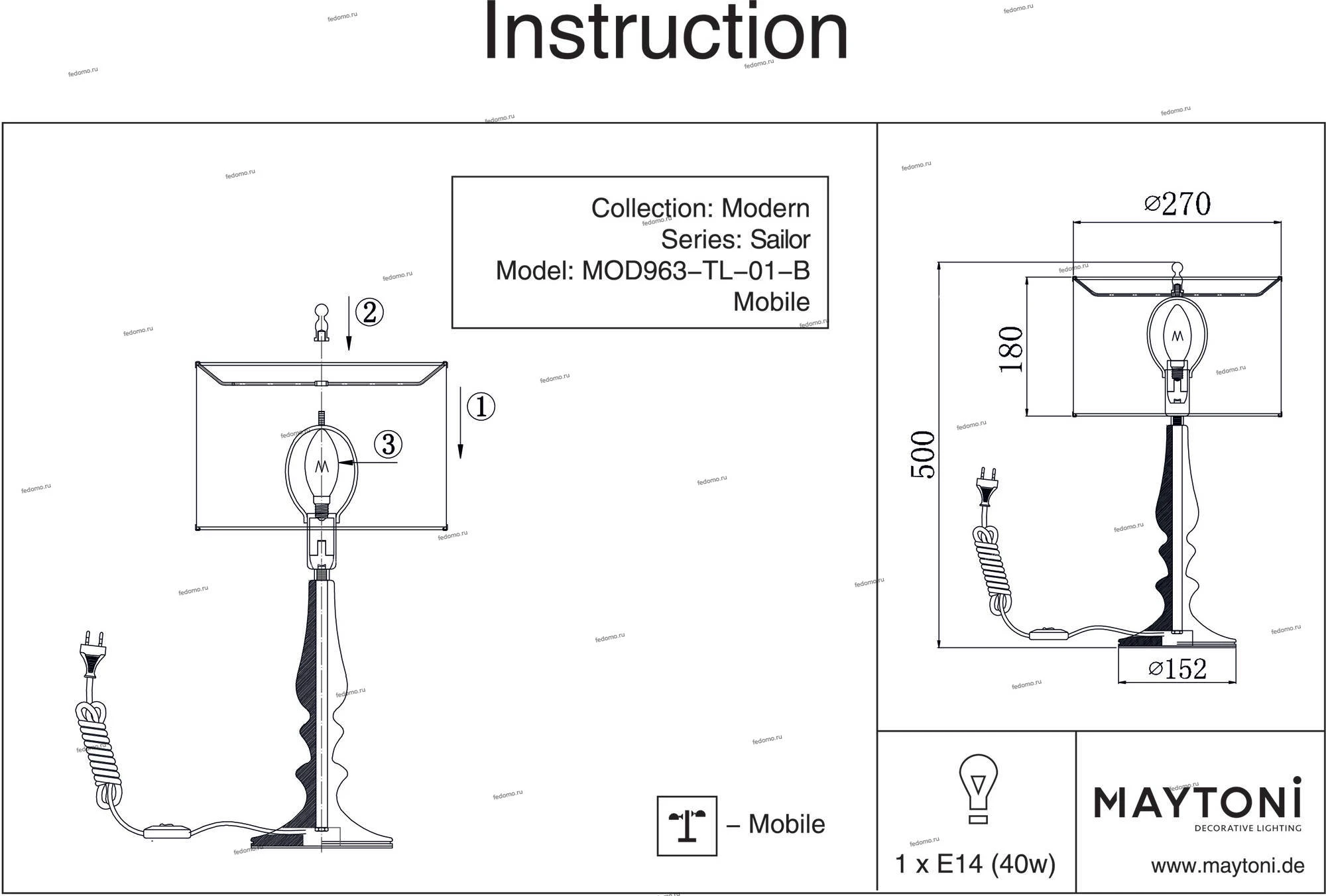 Интерьерная настольная лампа MOD963-TL-01-B из серии Sailor от компании Maytoni будет удачно смотреться на столе в спальне, кабинете, оформленных в стиле модерн. Интерьерная лампа в полоску имеет 1 абажур и 1 лампочку с цоколем E14, мощностью 40W и напряжением 220V. Модель устанавливается на основание, есть возможность подключения диммера. Основной материал и цвет арматуры - черный металл, материал абажура - ткань, пвх. Габариты изделия: высота - 500 мм. Лампочки в комплект не входят. Лучшая цена и условия доставки на Maytoni MOD963-TL-01-B в интернет-магазине Fedomo.ru.