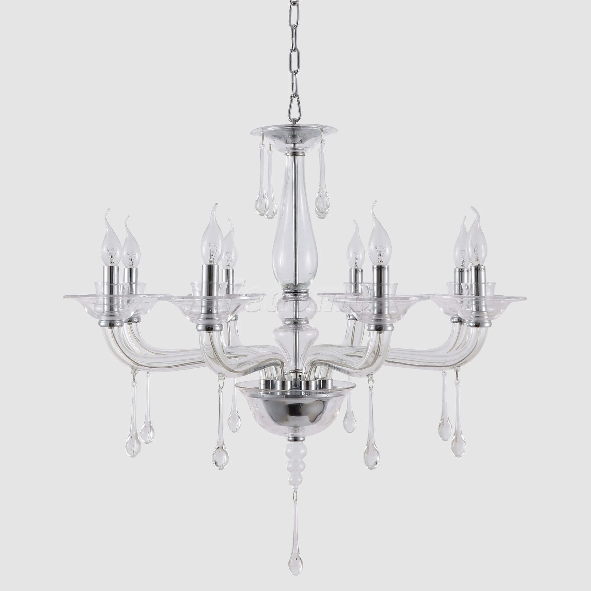 Конструкция подвесной люстры позволяет регулировать высоту изменением количества звеньев цепи.