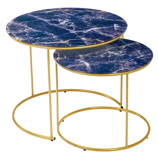 Набор кофейных столиков Tango темно-синий с ножками матовое золото, 2шт