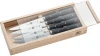 Набор ножей для стейка из 4 предметов от ZWILLING - идеальный аксессуар для любителей мяса. Очень острый нож элегантной формы с лезвием длиной 12 см легко скользит по сочному стейку. Пластиковая ручка с тремя заклепками завершает внешний вид ножа для стейка ZWILLING. Лезвие чрезвычайно прочное и устойчивое к коррозии. Ножи для стейков также имеют зазубренный край. Это высококачественное лезвие не только обеспечивает долгий срок службы ножей, но и превосходную режущую способность. Легким скользящим движением нож без усилий разрежет любое мясо. Этот набор ножей для стейка от ZWILLING дает Вам замечательную возможность по-новому насладиться стейком. Благодаря эффектной и высококачественной деревянной коробке с прозрачной крышкой набор также идеально подходит для подарка. С набором ножей для стейка от ZWILLING еда становится вдвое приятнее. Качественные ножи для любителей стейков Прецизионные лезвия из цельного куска нитро-стали Прочные, коррозионно-стойкие и гибкие ножи Эргономичная ручка с тремя заклепками изготовлена из пластика