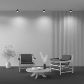 Серия полочных светильников из металла, окрашенных в черный и белый цвета. В конструкции предусмотрено 2 светодиодных источника света. Один выполняет роль основного освещения, другой предназначен для декоративной подсветки. Короткими, последовательными выключениями можно выбрать один из трех режимов работы.