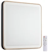 Светильник 7621/DL линии AKUNA состоит из металлического основания (базы) и пластикового рассеивателя. Материал рассеивателя - качественный акрил белого цвета с матовой поверхностью, без текстуры. Пластик обеспечивает светильнику равномерное рассеивание и хорошее светопропускание. Форма плафона: квадратная, декорирована ободом из пластика черного цвета и кантом цвета "медь". На боковой части плафона имеется светящаяся зона, близкая к поверхности, которая красиво подсвечивает потолок, стену. Степень защиты IP43 позволяет использовать светильник в определенных зонах влажных помещений. В комплект входит заменяемый LED модуль с линзами, мощностью 48Вт, которая соответствует лампе накаливания 430Вт. А также пульт ДУ, с помощью которого осуществляется плавное изменение цветовой температуры 3000-4200-6300К, изменение яркости, переход в режим переключения теплого/белого/холодного/ночного света. Светильник имеет функцию "память".