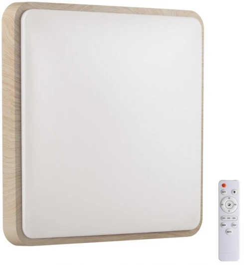 Светильник 7608/EL линии MERTO состоит из металлического основания (базы) и пластикового рассеивателя. Материал рассеивателя - высококачественный пластик марки PMMA 2.0 белого цвета с матовой поверхностью, без текстуры. Пластик обеспечивает светильнику равномерное рассеивание и хорошее светопропускание. Форма плафона: квадратная, декорирована ободом из пластика бежевого цвета "под дерево". Степень защиты IP43 позволяет использовать светильник в определенных зонах влажных помещений. В комплект входит заменяемый LED модуль с линзами, мощностью 72Вт, которая соответствует лампе накаливания 730Вт. А также пульт ДУ, с помощью которого осуществляется плавное изменение цветовой температуры 3000-4200-6300К, изменение яркости, переход в режим переключения теплого/белого/холодного/ночного света. Светильник имеет функцию "память".