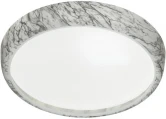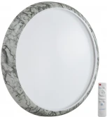 Светильник 7638/EL линии MRAMO WHITE состоит из металлического основания (базы) и пластикового рассеивателя. Материал рассеивателя - высококачественный пластик марки PMMA 2.0 белого цвета с матовой поверхностью, без текстуры. Пластик обеспечивает светильнику равномерное рассеивание и хорошее светопропускание. Форма плафона: круглая, декорирована ободом "под мрамор" из пластика белого и черного цветов. Степень защиты IP43 позволяет использовать светильник в определенных зонах влажных помещений. В комплект входит заменяемый LED модуль с линзами, мощностью 70Вт, которая соответствует лампе накаливания 610Вт. А также пульт ДУ (с креплением на стену), с помощью которого осуществляется плавное изменение цветовой температуры 3000-6000К, изменение яркости, переход в режим переключения теплого/белого/холодного/ночного света. Светильник имеет функцию "память".