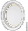 Светильник 7641/EL линии SUZY GOLD состоит из металлического основания (базы) и пластикового рассеивателя. Материал рассеивателя - высококачественный пластик марки PMMA 2.0 белого цвета с матовой поверхностью, без текстуры. Пластик обеспечивает светильнику равномерное рассеивание и хорошее светопропускание. Форма плафона: круглая, декорирована ободом "под хрусталь" из пластика прозрачного цвета. Обод украшен пластиковым кантом, цвет золото. Степень защиты IP43 позволяет использовать светильник в определенных зонах влажных помещений. В комплект входит заменяемый LED модуль с линзами, мощностью 70Вт, которая соответствует лампе накаливания 610Вт. А также пульт ДУ (с креплением на стену), с помощью которого осуществляется плавное изменение цветовой температуры 3000-6000К, изменение яркости, переход в режим переключения теплого/белого/холодного/ночного света. Светильник имеет функцию "память".