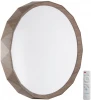Светильник 7637/DL линии ZIF WOOD состоит из металлического основания (базы) и пластикового рассеивателя. Материал рассеивателя - высококачественный пластик марки PMMA 2.0 белого цвета с матовой поверхностью, обеспечивающий светильнику равномерное рассеивание и хорошее светопропускание. Форма плафона: круглая, декорирована ободом "под дерево" из пластика коричневого цвета. Степень защиты IP43 позволяет использовать светильник в определенных зонах влажных помещений. В комплект входит заменяемый LED модуль с линзами, мощностью 48Вт, которая соответствует лампе накаливания 440Вт. А также пульт ДУ (с креплением на стену), с помощью которого осуществляется плавное изменение цветовой температуры 3000-6000К, изменение яркости, переход в режим переключения теплого/белого/холодного/ночного света. Светильник имеет функцию "память".