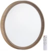 Светильник 7603/DL линии WOODI состоит из металлического основания (базы) и пластикового рассеивателя. Материал рассеивателя - высококачественный пластик марки PMMA 2.0 белого цвета с матовой поверхностью, без текстуры. Пластик обеспечивает светильнику равномерное рассеивание и хорошее светопропускание. Форма плафона: круглая, декорирована ободом светло-коричневого цвета "под дерево". Степень защиты IP43 позволяет использовать светильник в определенных зонах влажных помещений. В комплект входит заменяемый LED модуль с линзами, мощностью 48Вт, которая соответствует лампе накаливания 350Вт. А также пульт ДУ, с помощью которого осуществляется плавное изменение цветовой температуры 3000-6000К, изменение яркости, переход в режим переключения теплого/белого/холодного/ночного света. Светильник имеет функцию "память".