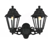 Уличные светильники-бра FUMAGALLI серии ANNA, модель PORPORA/ANNA. Консольный уличный светильник из 2-х фонарей ANNA, на кронштейнах BISSO малого размера, для монтажа на стену. Используются для фасадного и архитектурного освещения в стиле "классика". Место установки уличных светильников - фасады, колонны и другие вертикальные поверхности исторических зданий, котеджей, загородных домов, церквей, а так же, другие места где требуется и возможна установка фонарей. Изготовлены в Италии, по уникальным технологиям "FUMAGALLI" из современного композитного полимера RESIN. Этот материал в 5 раз прочнее металла, не ржавеет, не окисляется, не выгорает на солнце, его не нужно красить. Все светильники пыле-влаго защищены по стандарту IP44 (защита от попадания твердых частиц более 1мм., защита от капель или брызг, падающих под любым углом). Рассеиватель выполнен из антивандального, не мутнеющего и не горючего PMMA (ПолиМетилМетаАкрилат). Срок службы светильника - не менее 20 лет. Температура использования от +60 до -90. В серии ANNA есть фонари в настенном (BISSO/ANNA, PORPORA/ANNA) подвесном (SICHEM/ANNA, SICHEM/ANNA 3L) и наземном исполнении (IAFAET.R/ANNA, ALOE.R/ANNA, ARTU/ANNA, GIGI/ANNA, RICU/ANNA, RICU/ISSO/ANNA 1L, RICU/ISSO/ANNA 2L, RICU/ISSO/ANNA 3L) со столбами разной высоты, с разным количеством и конфигурацией голов. Консоли настенных фонарей и кронштейны светильников на столбах освщения могут устанавливаться вверх/вниз. Столбы выше 150 см имеют в основе мощную стальную трубу с двойной оцинковкой. При заказе требуется выбрать цвет корпуса, цвет плафона и тип патрона. Возможен светодиодный вариант с LED цоколем GX-53. По стилю и дизайну серия уличных светильников ANNA похожа на светильники среднего размера серии RUT и на светильники большого размера серии NOEMI. По размеру ANNA относится к малым светильникам как серия SABA и GLOBE 250.