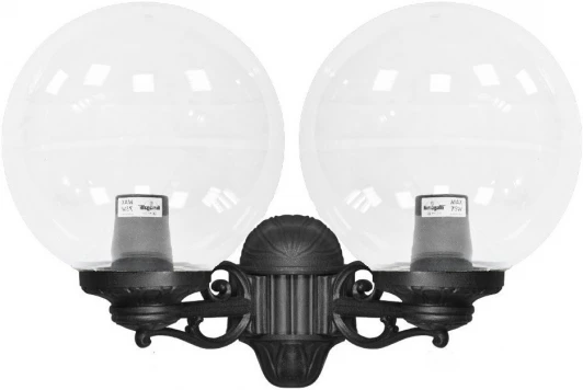 Светильники уличные настенные FUMAGALLI серии GLOBE 300, модель PORPORA/GLOBE 300. Консольный уличный светильник из 2-х светильников-шаров GLOBE 300, на кронштейнах BISSO малого размера, для монтажа на стену, установленных "вверх". Используются для фасадного и архитектурного освещения в стиле "классика". Место установки уличных светильников - фасады, колонны и другие вертикальные поверхности исторических зданий, котеджей, загородных домов, церквей, а так же, другие места где требуется и возможна установка фонарей. Изготовлены в Италии, по уникальным технологиям "FUMAGALLI" из современного композитного полимера RESIN. Этот материал в 5 раз прочнее металла, не ржавеет, не окисляется, не выгорает на солнце, его не нужно красить. Все светильники пыле-влаго защищены по стандарту IP65 (Пыленепроницаемые, защита от водяных струй с любого направления). Рассеиватель выполнен из антивандального, не мутнеющего и не горючего PMMA (ПолиМетилМетаАкрилат). Срок службы светильника - не менее 20 лет. Температура использования от -60 до +90. В серии GLOBE 250 есть фонари в настенном (BISSO/GLOBE 250, OFIR/GLOBE 250, MIRRA/GLOBE 250, PORPORA/GLOBE 250) подвесном (SICHEM/GLOBE 250) и наземном исполнении (IAFAET.R/GLOBE 250, ALOE.R/GLOBE 250, ARTU/GLOBE 250, GIGI/GLOBE 250, RICU/GLOBE 250, RICU/ISSO/GLOBE 250 1L, RICU/ISSO/GLOBE 250 2L, RICU/ISSO/GLOBE 250 3L) со столбами разной высоты, с разным количеством и конфигурацией голов. Консоли настенных фонарей и кронштейны светильников на столбах освщения могут устанавливаться вверх/вниз. Столбы выше 150 см имеют в основе мощную стальную трубу с двойной оцинковкой. При заказе требуется выбрать цвет корпуса, цвет плафона и тип патрона. По стилю и дизайну серия уличных светильников GLOBE 250 похожа на светильники большого размера GLOBE 400 и на светильники среднего размера GLOBE 300. Тип крепления: Монтажный комплект (дюбель/саморез/декоративный колпачок). В комплекте филаментовые светодиодные лампочки "FUMAGALLI" яркостью 800 L. m