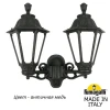 Уличные светильники-бра FUMAGALLI серии RUT, модель PORPORA/RUT. Консольный уличный светильник из 2-х фонарей RUT, на кронштейнах BISSO малого размера, для монтажа на стену. Используются для фасадного и архитектурного освещения в стиле "классика". Место установки уличных светильников - фасады, колонны и другие вертикальные поверхности исторических зданий, котеджей, загородных домов, церквей, а так же, другие места где требуется и возможна установка фонарей. Изготовлены в Италии, по уникальным технологиям "FUMAGALLI" из современного композитного полимера RESIN. Этот материал в 5 раз прочнее металла, не ржавеет, не окисляется, не выгорает на солнце, его не нужно красить. Все светильники пыле-влаго защищены по стандарту IP55 (Пылезащищенные, защита от водяных струй с любого направления). Рассеиватель выполнен из антивандального, не мутнеющего и не горючего PMMA (ПолиМетилМетаАкрилат). Срок службы светильника - не менее 20 лет. Температура использования от +60 до -90. В серии GLOBE 300 есть фонари в настенном (BISSO/ RUT, OFIR/ RUT, MIRRA/ RUT, PORPORA/ RUT) подвесном (SICHEM/ RUT) и наземном исполнении (MINILOT/ RUT, MIZAR.R/ RUT, IAFAET.R/ RUT, ALOE.R/ RUT, ARTU/ RUT, GIGI/ RUT, RICU/ RUT, RICU/ISSO/ RUT 2L, NEBO/ RUT, NEBO OFIR/ RUT 2L, NEBO OFIR/ RUT 3L) со столбами разной высоты, с разным количеством и конфигурацией голов. Консоли настенных фонарей и кронштейны светильников на столбах освщения могут устанавливаться вверх/вниз. Столбы выше 150 см имеют в основе мощную стальную трубу с двойной оцинковкой. При заказе требуется выбрать цвет корпуса, цвет плафона и тип патрона. По стилю и дизайну серия уличных светильников RUT похожа на светильники малого размера серии ANNA и на светильники большого размера серии NOEMI. По размеру RUT относится к средним светильникам как серия CEFA, SALEM и GLOBE 300.