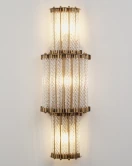 Настенный светильник Crumbly в современном стиле. Металлический каркас из нескольких уровней дополнен стеклянными вставками спиральной формы, которые создают мягкое и приглушенное освещение. В качестве источника света используются лампы с цоколем Е14. Светильник с площадью освещения 15 кв.м впишется в любой интерьер спальни, гостиной или коридора.