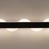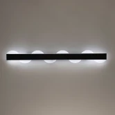 Металлическое основание потолочного светильника окрашено в черный цвет. Светодиодные источники света закрыты матовым акрилом. Светильник декорирован элементами из матового акрила.