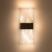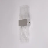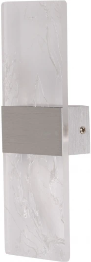 Металлическое основание настенного бра окрашено в цвет серебра. Основа плафона выполнена из сплава алюминия с цинком, обработана по технологии брашинг и оксидирована. Настенное бра декорировано полупрозрачным акриловым плафоном с декоративными белыми разводами.