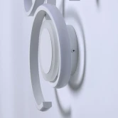 Металлическое основание потолочной люстры окрашено в белый цвет. Корпус плафона выполнен из сплава алюминия и окрашен в цвет основания. Светодиодные источники света закрыты белым силиконом и матовым акрилом.