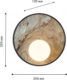 Натуральный камень — один из самых красивых, практичных и экологичных декоративных материалов, используемых в интерьере. Коллекция настенных светильников Messier раскрывает неповторимый природный рисунок камня, напоминающий след на песке от набежавшей волны. Каменный диск заключен в элегантную круглую металлическую раму, стеклянный плафон белого матового цвета со сменной лампой G9 дает мягкий рассеянный свет, подчеркивает фактуру и живописный узор прожилок песчаника Каркас из металла черного матового цвета, стеклянный плафон белого матового цвета, декор из натурального камня "зеленый песчаник", сменная лампа G9.