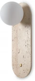 Серия Sunspot использует камень травертин как основной декоративный элемент. Настенные бра в двух вариантах: с матовым белым стеклянным плафоном и со «скользящим» теплым светом. Отличительная черта бра: увеличенный размер плафона и сенсорное включение/выключение без диммирования. Подвесные светильники имеют прозрачные стеклянные плафоны с декоративными шариками из камня травертин. Sunspot включают три модели подвесов разных размеров и форм стеклянной окантовки на плафон. Арматура — металл латунного и черного цвета Источники света LED 3000K и цоколь G9. Настольная лампа с touch переключателем . Серия создает комплексное зональное и акцентное освещение, подходящее для создания уютной атмосферы.