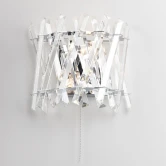 Корпус металлический, цвет хром. Модель украшена кристально прозрачными хрустальными элементами с модной огранкой «призма». В изделии используются две лампы с цоколем Е14, максимальной мощностью для ламп накаливания 60Вт. Светодиодные лампы можно устанавливать более яркие.
