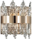 Фактурные стеклянные элементы линии Margot - будто замёрзшие брызги на золотом кольце арматуры. Линия выглядит стильно и свежо в буквальном смысле слова. Люстры имеют фиксированную высоту и отлично впишутся в комнаты с невысокими потолками. Линия состоит из двух люстр разного диаметра, а так же эффектного бра для зональной подсветки. Рекомендуется использовать лампы типа свеча. В комплект не входят.