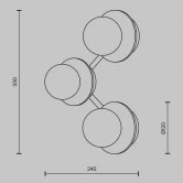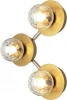 Металлическая арматура цвета латуни с сатинированным эффектом. Яркие небольшие плафоны диаметром 80 мм цвета янтаря. Встроенный LED источник света дает мощный световой поток с цветовой температурой 3000К и углом рассеивания 120 градусов. Подвесные светильники выполнены в виде перевернутой арки и в трендовой форме круга, расположение плафонов настенного светильника напоминает созвездие.