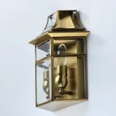 Основание из благородной латуни дополнено стеклянными сегментами в латунных рамках с четкой геометрией.