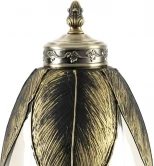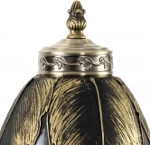 Корпус светильника металлический, декоративные элементы имеют оригинальный экзотический характер, что придает ей уникальный и неповторимый вид. Цвет темной состаренной бронзы идеально сочетается с плафонами из прозрачного стекла светло-янтарного оттенка, создавая гармоничное и стильное сочетание.