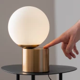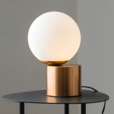 Материал арматуры — металл, цвет — латунь. Шаровидный плафон, рассеянный свет. Функция touch-dimming позволяет регулировать яркость света. Источник света — лампа с цоколем G9.