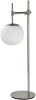 Металлическое основание настольной лампы гальванизировано в цвет никеля и матировано. Настольная лампа декорирована округлым плафоном из белого матового стекла.