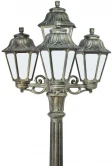 Садовые светильники - столбы FUMAGALLI серии ANNA, модель ANNA/RICU/BISSO 3L+1. Парковый торшер, столб RICU с тремя уличными фонарями ANNA на малых консолях BISSO и одним фонарем на столбе. Используются для архитектурного и ландшафтного освещения в стиле "классика". Место установки столбиков освещения - парковые дорожки, cкверы, садовые участки, тротуары, а так же ландшафтные и архитектурные объекты. Изготовлены в Италии, по уникальным технологиям "FUMAGALLI" из современного композитного полимера RESIN. Этот материал в 5 раз прочнее металла, не ржавеет, не окисляется, не выгорает на солнце, его не нужно красить. Все светильники пыле-влаго защищены по стандарту IP44 (защита от попадания твердых частиц более 1мм., защита от капель или брызг, падающих под любым углом). Рассеиватель выполнен из антивандального, не мутнеющего и не горючего PMMA (ПолиМетилМетаАкрилат). Срок службы светильника - не менее 20 лет. Температура использования от +60 до -90. В серии ANNA есть фонари в настенном (BISSO/ANNA, PORPORA/ANNA) подвесном (SICHEM/ANNA, SICHEM/ANNA 3L) и наземном исполнении (IAFAET.R/ANNA, ALOE.R/ANNA, ARTU/ANNA, GIGI/ANNA, RICU/ANNA, RICU/ISSO/ANNA 1L, RICU/ISSO/ANNA 2L, RICU/ISSO/ANNA 3L) со столбами разной высоты, с разным количеством и конфигурацией голов. Консоли настенных фонарей и кронштейны светильников на столбах освщения могут устанавливаться вверх/вниз. Столбы выше 150 см имеют в основе мощную стальную трубу с двойной оцинковкой. При заказе требуется выбрать цвет корпуса, цвет плафона и тип патрона (Е-27 или LED GX-53). Возможен светодиодный вариант. По стилю и дизайну серия уличных светильников ANNA похожа на светильники среднего размера серии RUT и на светильники большого размера серии NOEMI. По размеру ANNA относится к малым светильникам как серия SABA и GLOBE 250.
