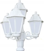 Садовые светильники - столбы FUMAGALLI серии ANNA, модель ANNA/RICU/BISSO 3L+1. Парковый торшер, столб RICU с тремя уличными фонарями ANNA на малых консолях BISSO и одним фонарем на столбе. Используются для архитектурного и ландшафтного освещения в стиле "классика". Место установки столбиков освещения - парковые дорожки, cкверы, садовые участки, тротуары, а так же ландшафтные и архитектурные объекты. Изготовлены в Италии, по уникальным технологиям "FUMAGALLI" из современного композитного полимера RESIN. Этот материал в 5 раз прочнее металла, не ржавеет, не окисляется, не выгорает на солнце, его не нужно красить. Все светильники пыле-влаго защищены по стандарту IP44 (защита от попадания твердых частиц более 1мм., защита от капель или брызг, падающих под любым углом). Рассеиватель выполнен из антивандального, не мутнеющего и не горючего PMMA (ПолиМетилМетаАкрилат). Срок службы светильника - не менее 20 лет. Температура использования от +60 до -90. В серии ANNA есть фонари в настенном (BISSO/ANNA, PORPORA/ANNA) подвесном (SICHEM/ANNA, SICHEM/ANNA 3L) и наземном исполнении (IAFAET.R/ANNA, ALOE.R/ANNA, ARTU/ANNA, GIGI/ANNA, RICU/ANNA, RICU/ISSO/ANNA 1L, RICU/ISSO/ANNA 2L, RICU/ISSO/ANNA 3L) со столбами разной высоты, с разным количеством и конфигурацией голов. Консоли настенных фонарей и кронштейны светильников на столбах освщения могут устанавливаться вверх/вниз. Столбы выше 150 см имеют в основе мощную стальную трубу с двойной оцинковкой. При заказе требуется выбрать цвет корпуса, цвет плафона и тип патрона (Е-27 или LED GX-53). Возможен светодиодный вариант. По стилю и дизайну серия уличных светильников ANNA похожа на светильники среднего размера серии RUT и на светильники большого размера серии NOEMI. По размеру ANNA относится к малым светильникам как серия SABA и GLOBE 250.