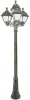 Садовые светильники - столбы FUMAGALLI серии GLOBE CEFA, модель CEFA /GIGI/BISSO 3+1. Парковый торшер, столб GIGI с тремя уличными фонарями CEFA на трех малых консолях BISSO и одним светильником на опоре. Используются для архитектурного и ландшафтного освещения в стиле "классика". Место установки столбиков освещения - парковые дорожки, cкверы, садовые участки, тротуары, а так же ландшафтные и архитектурные объекты. Могут устанавливаться и внутри помещений в качестве декоративных уличных фонарей. Изготовлены в Италии, по уникальным технологиям "FUMAGALLI" из современного композитного полимера RESIN. Этот материал в 5 раз прочнее металла, не ржавеет, не окисляется, не выгорает на солнце, его не нужно красить. Все светильники пыле-влаго защищены по стандарту IP55 (Пылезащищенные, защита от водяных струй с любого направления). В комплекте идут крепежи и закладные элементы. Рассеиватель выполнен из антивандального, не мутнеющего и не горючего PMMA (ПолиМетилМетаАкрилат). Срок службы светильника - не менее 20 лет. Температура использования от +60 до -90. В серии GLOBE 300 есть фонари в настенном (BISSO/CEFA, OFIR/CEFA, MIRRA/CEFA, PORPORA/CEFA) подвесном (SICHEM/CEFA) и наземном исполнении (MINILOT/CEFA, MIZAR.R/CEFA, IAFAET.R/CEFA, ALOE.R/CEFA, ARTU/CEFA, GIGI/CEFA, RICU/CEFA, RICU/ISSO/CEFA 2L, NEBO/CEFA, NEBO OFIR/CEFA 2L, NEBO OFIR/CEFA 3L) со столбами разной высоты, с разным количеством и конфигурацией голов. Консоли настенных фонарей и кронштейны светильников на столбах освщения могут устанавливаться вверх/вниз. Столбы выше 150 см имеют в основе мощную стальную трубу с двойной оцинковкой. При заказе требуется выбрать цвет корпуса, цвет плафона и тип патрона. По стилю и дизайну серия уличных светильников CEFA похожа на светильники большого размера SIMON и на светильники очень большого размера (Гранд) PIETRO. По размеру CEFA относится к средним светильникам как серия RUT, SALEM и GLOBE 300.