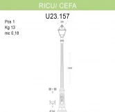 Садовые светильники - столбы FUMAGALLI серии CEFA, модель CEFA/RICU. Парковый торшер, столб освещения RICU с одним уличным фонарем CEFA. Используются для архитектурного и ландшафтного освещения в стиле "классика". Место установки столбиков освещения - котеджные поселки, парковые дорожки, дачные участки, тротуары, газоны в парках и скверах, а так же ландшафтные и архитектурные объекты. Изготовлены в Италии, по уникальным технологиям "FUMAGALLI" из современного композитного полимера RESIN. Этот материал в 5 раз прочнее металла, не ржавеет, не окисляется, не выгорает на солнце, его не нужно красить. Все светильники пыле-влаго защищены по стандарту IP55 (Пылезащищенные, защита от водяных струй с любого направления). В комплекте идут крепежи и закладные элементы. Рассеиватель выполнен из антивандального, не мутнеющего и не горючего PMMA (ПолиМетилМетаАкрилат). Срок службы светильника - не менее 20 лет. Температура использования от +60 до -90. В серии GLOBE 300 есть фонари в настенном (BISSO/CEFA, OFIR/CEFA, MIRRA/CEFA, PORPORA/CEFA) подвесном (SICHEM/CEFA) и наземном исполнении (MINILOT/CEFA, MIZAR.R/CEFA, IAFAET.R/CEFA, ALOE.R/CEFA, ARTU/CEFA, GIGI/CEFA, RICU/CEFA, RICU/ISSO/CEFA 2L, NEBO/CEFA, NEBO OFIR/CEFA 2L, NEBO OFIR/CEFA 3L) со столбами разной высоты, с разным количеством и конфигурацией голов. Консоли настенных фонарей и кронштейны светильников на столбах освщения могут устанавливаться вверх/вниз. Столбы выше 150 см имеют в основе мощную стальную трубу с двойной оцинковкой. При заказе требуется выбрать цвет корпуса, цвет плафона и тип патрона. По стилю и дизайну серия уличных светильников CEFA похожа на светильники большого размера SIMON и на светильники очень большого размера (Гранд) PIETRO. По размеру CEFA относится к средним светильникам как серия RUT, SALEM и GLOBE 300.
