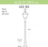 Светильники- столбики газонные FUMAGALLI серии CEFA, модель CEFA/ALOE.R. Столбик освещения ALOE.R и светильник CEFA. Используются для архитектурного и ландшафтного освещения в стиле "классика". Место установки столбиков освещения - парковые дорожки, тротуары, газоны в парках и скверах, а так же ландшафтные и архитектурные объекты. Изготовлены в Италии, по уникальным технологиям "FUMAGALLI" из современного композитного полимера RESIN. Этот материал в 5 раз прочнее металла, не ржавеет, не окисляется, не выгорает на солнце, его не нужно красить. Все светильники пыле-влаго защищены по стандарту IP55 (Пылезащищенные, защита от водяных струй с любого направления). В комплекте идут крепежи и закладные элементы. Рассеиватель выполнен из антивандального, не мутнеющего и не горючего PMMA (ПолиМетилМетаАкрилат). Срок службы светильника - не менее 20 лет. Температура использования от +60 до -90. В серии GLOBE 300 есть фонари в настенном (BISSO/CEFA, OFIR/CEFA, MIRRA/CEFA, PORPORA/CEFA) подвесном (SICHEM/CEFA) и наземном исполнении (MINILOT/CEFA, MIZAR.R/CEFA, IAFAET.R/CEFA, ALOE.R/CEFA, ARTU/CEFA, GIGI/CEFA, RICU/CEFA, RICU/ISSO/CEFA 2L, NEBO/CEFA, NEBO OFIR/CEFA 2L, NEBO OFIR/CEFA 3L) со столбами разной высоты, с разным количеством и конфигурацией голов. Консоли настенных фонарей и кронштейны светильников на столбах освщения могут устанавливаться вверх/вниз. Столбы выше 150 см имеют в основе мощную стальную трубу с двойной оцинковкой. При заказе требуется выбрать цвет корпуса, цвет плафона и тип патрона. По стилю и дизайну серия уличных светильников CEFA похожа на светильники большого размера SIMON и на светильники очень большого размера (Гранд) PIETRO. По размеру CEFA относится к средним светильникам как серия RUT, SALEM и GLOBE 300.