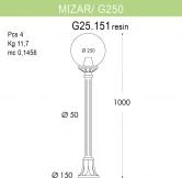 Садовый светильник-столбик FUMAGALLI серии GLOBE 250, модель GLOBE 250/MIZAR.R. Столбик освещения MIZAR.R и светильник GLOBE 250. Используются для архитектурного и ландшафтного освещения в стиле "классика". Место установки столбиков освещения - парковые дорожки, тротуары, газоны в парках и скверах, а так же ландшафтные и архитектурные объекты. Изготовлены в Италии, по уникальным технологиям "FUMAGALLI" из современного композитного полимера RESIN. Этот материал в 5 раз прочнее металла, не ржавеет, не окисляется, не выгорает на солнце, его не нужно красить. Все светильники пыле-влаго защищены по стандарту IP55 (Пыленепроницаемые, защита от водяных струй с любого направления). В комплекте идут крепежи и закладные элементы. Рассеиватель выполнен из антивандального, не мутнеющего и не горючего PMMA (ПолиМетилМетаАкрилат). Срок службы светильника - не менее 20 лет. Температура использования от -60 до +90. В серии GLOBE 250 есть фонари в настенном (BISSO/GLOBE 250, OFIR/GLOBE 250, MIRRA/GLOBE 250, PORPORA/GLOBE 250) подвесном (SICHEM/GLOBE 250) и наземном исполнении (IAFAET.R/GLOBE 250, ALOE.R/GLOBE 250, ARTU/GLOBE 250, GIGI/GLOBE 250, RICU/GLOBE 250, RICU/ISSO/GLOBE 250 1L, RICU/ISSO/GLOBE 250 2L, RICU/ISSO/GLOBE 250 3L) со столбами разной высоты, с разным количеством и конфигурацией голов. Консоли настенных фонарей и кронштейны светильников на столбах освщения могут устанавливаться вверх/вниз. Столбы выше 150 см имеют в основе мощную стальную трубу с двойной оцинковкой. При заказе требуется выбрать цвет корпуса, цвет плафона и тип патрона. По стилю и дизайну серия уличных светильников GLOBE 250 похожа на светильники большого размера GLOBE 400 и на светильники среднего размера GLOBE 300. Тип крепления: Монтажный комплект (дюбель/саморез/декоративный колпачок). Комплектация: С уличной лампой "FUMAGALLI" яркостью 800Lm. Спец. для улицы, с защитой от скачков напряжения, перепадов температуры и повышенной влажности.