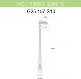 Садово-парковый фонарь FUMAGALLI серии GLOBE 250, модель GLOBE 250/RICU/BISSO 1L. Парковый торшер, столб RICU с одним уличным фонарем GLOBE 250, установленом "вниз", на кронштейне BISSO малого размера. Используются для архитектурного и ландшафтного освещения в стиле "классика". Место установки столбиков освещения - котеджные поселки, парковые дорожки, дачные участки, тротуары, газоны в парках и скверах, а так же ландшафтные и архитектурные объекты. Изготовлены в Италии, по уникальным технологиям "FUMAGALLI" из современного композитного полимера RESIN. Этот материал в 5 раз прочнее металла, не ржавеет, не окисляется, не выгорает на солнце, его не нужно красить. Все светильники пыле-влаго защищены по стандарту IP55 (Пыленепроницаемые, защита от водяных струй с любого направления). В комплекте идут крепежи и закладные элементы. Рассеиватель выполнен из антивандального, не мутнеющего и не горючего PMMA (ПолиМетилМетаАкрилат). Срок службы светильника - не менее 20 лет. Температура использования от -60 до +90. В серии GLOBE 250 есть фонари в настенном (BISSO/GLOBE 250, OFIR/GLOBE 250, MIRRA/GLOBE 250, PORPORA/GLOBE 250) подвесном (SICHEM/GLOBE 250) и наземном исполнении (IAFAET.R/GLOBE 250, ALOE.R/GLOBE 250, ARTU/GLOBE 250, GIGI/GLOBE 250, RICU/GLOBE 250, RICU/ISSO/GLOBE 250 1L, RICU/ISSO/GLOBE 250 2L, RICU/ISSO/GLOBE 250 3L) со столбами разной высоты, с разным количеством и конфигурацией голов. Консоли настенных фонарей и кронштейны светильников на столбах освщения могут устанавливаться вверх/вниз. Столбы выше 150 см имеют в основе мощную стальную трубу с двойной оцинковкой. При заказе требуется выбрать цвет корпуса, цвет плафона и тип патрона. По стилю и дизайну серия уличных светильников GLOBE 250 похожа на светильники большого размера GLOBE 400 и на светильники среднего размера GLOBE 300. Тип крепления: Анкерная закладная ТИП "B" (3 закладных детали, рамка, гайки, декоративные колпачки). Комплектация: С уличной лампой "FUMAGALLI" яркостью 800Lm. Спец. для улицы, с защитой от скачков напряжения, перепадов температуры и повышенной влажности.
