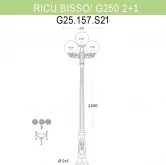 Садово-парковый фонарь FUMAGALLI серии GLOBE 250, модель GLOBE 250/RICU/BISSO 2L+1. Парковый торшер, столб RICU с двумя уличными фонарями - шарами GLOBE 250 на малых консолях BISSO смонтированными "вверх" и одним светильником - шаром по центру опоры освещения. Используются для архитектурного и ландшафтного освещения в стиле "классика". Место установки столбиков освещения - парковые дорожки, cкверы, садовые участки, тротуары, а так же ландшафтные и архитектурные объекты. Изготовлены в Италии, по уникальным технологиям "FUMAGALLI" из современного композитного полимера RESIN. Этот материал в 5 раз прочнее металла, не ржавеет, не окисляется, не выгорает на солнце, его не нужно красить. Все светильники пыле-влаго защищены по стандарту IP55 (Пыленепроницаемые, защита от водяных струй с любого направления). В комплекте идут крепежи и закладные элементы. Рассеиватель выполнен из антивандального, не мутнеющего и не горючего PMMA (ПолиМетилМетаАкрилат). Срок службы светильника - не менее 20 лет. Температура использования от -60 до +90. В серии GLOBE 250 есть фонари в настенном (BISSO/GLOBE 250, OFIR/GLOBE 250, MIRRA/GLOBE 250, PORPORA/GLOBE 250) подвесном (SICHEM/GLOBE 250) и наземном исполнении (IAFAET.R/GLOBE 250, ALOE.R/GLOBE 250, ARTU/GLOBE 250, GIGI/GLOBE 250, RICU/GLOBE 250, RICU/ISSO/GLOBE 250 1L, RICU/ISSO/GLOBE 250 2L, RICU/ISSO/GLOBE 250 3L) со столбами разной высоты, с разным количеством и конфигурацией голов. Консоли настенных фонарей и кронштейны светильников на столбах освщения могут устанавливаться вверх/вниз. Столбы выше 150 см имеют в основе мощную стальную трубу с двойной оцинковкой. При заказе требуется выбрать цвет корпуса, цвет плафона и тип патрона. По стилю и дизайну серия уличных светильников GLOBE 250 похожа на светильники большого размера GLOBE 400 и на светильники среднего размера GLOBE 300. Тип крепления: Анкерная закладная ТИП "B" (3 закладных детали, рамка, гайки, декоративные колпачки). Комплектация: С уличной лампой "FUMAGALLI" яркостью 800Lm. Спец. для улицы, с защитой от скачков напряжения, перепадов температуры и повышенной влажности.