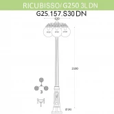 Садово-парковый фонарь FUMAGALLI серии GLOBE 250, модель GLOBE 250/RICU/BISSO 3L DN. Парковый торшер, столб RICU с тремя уличными фонарями GLOBE 250 на малых консолях BISSO установленных "вниз". Используются для архитектурного и ландшафтного освещения в стиле "классика". Место установки столбиков освещения - парковые дорожки, cкверы, садовые участки, тротуары, а так же ландшафтные и архитектурные объекты. Изготовлены в Италии, по уникальным технологиям "FUMAGALLI" из современного композитного полимера RESIN. Этот материал в 5 раз прочнее металла, не ржавеет, не окисляется, не выгорает на солнце, его не нужно красить. Все светильники пыле-влаго защищены по стандарту IP55 (Пыленепроницаемые, защита от водяных струй с любого направления). В комплекте идут крепежи и закладные элементы. Рассеиватель выполнен из антивандального, не мутнеющего и не горючего PMMA (ПолиМетилМетаАкрилат). Срок службы светильника - не менее 20 лет. Температура использования от -60 до +90. В серии GLOBE 250 есть фонари в настенном (BISSO/GLOBE 250, OFIR/GLOBE 250, MIRRA/GLOBE 250, PORPORA/GLOBE 250) подвесном (SICHEM/GLOBE 250) и наземном исполнении (IAFAET.R/GLOBE 250, ALOE.R/GLOBE 250, ARTU/GLOBE 250, GIGI/GLOBE 250, RICU/GLOBE 250, RICU/ISSO/GLOBE 250 1L, RICU/ISSO/GLOBE 250 2L, RICU/ISSO/GLOBE 250 3L) со столбами разной высоты, с разным количеством и конфигурацией голов. Консоли настенных фонарей и кронштейны светильников на столбах освщения могут устанавливаться вверх/вниз. Столбы выше 150 см имеют в основе мощную стальную трубу с двойной оцинковкой. При заказе требуется выбрать цвет корпуса, цвет плафона и тип патрона. По стилю и дизайну серия уличных светильников GLOBE 250 похожа на светильники большого размера GLOBE 400 и на светильники среднего размера GLOBE 300. Тип крепления: Анкерная закладная ТИП "B" (3 закладных детали, рамка, гайки, декоративные колпачки). Комплектация: С уличной лампой "FUMAGALLI" яркостью 800Lm. Спец. для улицы, с защитой от скачков напряжения, перепадов температуры и повышенной влажности.
