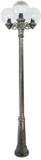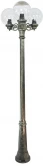 Садово-парковый фонарь FUMAGALLI серии GLOBE 250, модель GLOBE 250/RICU/BISSO 3L. Парковый торшер, столб RICU с тремя уличными фонарями GLOBE 250 на малых консолях BISSO. Используются для архитектурного и ландшафтного освещения в стиле "классика". Место установки столбиков освещения - парковые дорожки, cкверы, садовые участки, тротуары, а так же ландшафтные и архитектурные объекты. Изготовлены в Италии, по уникальным технологиям "FUMAGALLI" из современного композитного полимера RESIN. Этот материал в 5 раз прочнее металла, не ржавеет, не окисляется, не выгорает на солнце, его не нужно красить. Все светильники пыле-влаго защищены по стандарту IP55 (Пыленепроницаемые, защита от водяных струй с любого направления). В комплекте идут крепежи и закладные элементы. Рассеиватель выполнен из антивандального, не мутнеющего и не горючего PMMA (ПолиМетилМетаАкрилат). Срок службы светильника - не менее 20 лет. Температура использования от -60 до +90. В серии GLOBE 250 есть фонари в настенном (BISSO/GLOBE 250, OFIR/GLOBE 250, MIRRA/GLOBE 250, PORPORA/GLOBE 250) подвесном (SICHEM/GLOBE 250) и наземном исполнении (IAFAET.R/GLOBE 250, ALOE.R/GLOBE 250, ARTU/GLOBE 250, GIGI/GLOBE 250, RICU/GLOBE 250, RICU/ISSO/GLOBE 250 1L, RICU/ISSO/GLOBE 250 2L, RICU/ISSO/GLOBE 250 3L) со столбами разной высоты, с разным количеством и конфигурацией голов. Консоли настенных фонарей и кронштейны светильников на столбах освщения могут устанавливаться вверх/вниз. Столбы выше 150 см имеют в основе мощную стальную трубу с двойной оцинковкой. При заказе требуется выбрать цвет корпуса, цвет плафона и тип патрона. По стилю и дизайну серия уличных светильников GLOBE 250 похожа на светильники большого размера GLOBE 400 и на светильники среднего размера GLOBE 300. Тип крепления: Анкерная закладная ТИП "B" (3 закладных детали, рамка, гайки, декоративные колпачки). Комплектация: С уличной лампой "FUMAGALLI" яркостью 800Lm. Спец. для улицы, с защитой от скачков напряжения, перепадов температуры и повышенной влажности.
