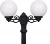 Садово-парковый фонарь FUMAGALLI серии GLOBE 250, модель GLOBE 250/ARTU/BISSO 2L. Парковый торшер, столб ARTU с двумя уличными фонарями GLOBE 250 на малых консолях BISSO. Используются для архитектурного и ландшафтного освещения в стиле "классика". Место установки столбиков освещения - парковые дорожки, cкверы, садовые участки, тротуары, а так же ландшафтные и архитектурные объекты. Изготовлены в Италии, по уникальным технологиям "FUMAGALLI" из современного композитного полимера RESIN. Этот материал в 5 раз прочнее металла, не ржавеет, не окисляется, не выгорает на солнце, его не нужно красить. Все светильники пыле-влаго защищены по стандарту IP55 (Пыленепроницаемые, защита от водяных струй с любого направления). В комплекте идут крепежи и закладные элементы. Рассеиватель выполнен из антивандального, не мутнеющего и не горючего PMMA (ПолиМетилМетаАкрилат). Срок службы светильника - не менее 20 лет. Температура использования от -60 до +90. В серии GLOBE 250 есть фонари в настенном (BISSO/GLOBE 250, OFIR/GLOBE 250, MIRRA/GLOBE 250, PORPORA/GLOBE 250) подвесном (SICHEM/GLOBE 250) и наземном исполнении (IAFAET.R/GLOBE 250, ALOE.R/GLOBE 250, ARTU/GLOBE 250, GIGI/GLOBE 250, RICU/GLOBE 250, RICU/ISSO/GLOBE 250 1L, RICU/ISSO/GLOBE 250 2L, RICU/ISSO/GLOBE 250 3L) со столбами разной высоты, с разным количеством и конфигурацией голов. Консоли настенных фонарей и кронштейны светильников на столбах освщения могут устанавливаться вверх/вниз. Столбы выше 150 см имеют в основе мощную стальную трубу с двойной оцинковкой. При заказе требуется выбрать цвет корпуса, цвет плафона и тип патрона. По стилю и дизайну серия уличных светильников GLOBE 250 похожа на светильники большого размера GLOBE 400 и на светильники среднего размера GLOBE 300. Тип крепления: Анкерная закладная ТИП "B" (3 закладных детали, рамка, гайки, декоративные колпачки). Комплектация: С уличной лампой "FUMAGALLI" яркостью 800Lm. Спец. для улицы, с защитой от скачков напряжения, перепадов температуры и повышенной влажности.