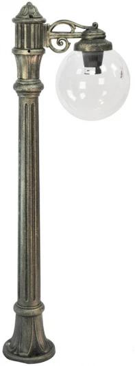 Садовый светильник-столбик FUMAGALLI серии GLOBE 250, модель GLOBE 250/ALOE.R. 1L Столбик освещения ALOE.R и один светильник GLOBE 250 расположеный "вниз", на малом кронштейне BISSO . Используются для архитектурного и ландшафтного освещения в стиле "классика". Место установки столбиков освещения - парковые дорожки, тротуары, газоны в парках и скверах, а так же ландшафтные и архитектурные объекты. Изготовлены в Италии, по уникальным технологиям "FUMAGALLI" из современного композитного полимера RESIN. Этот материал в 5 раз прочнее металла, не ржавеет, не окисляется, не выгорает на солнце, его не нужно красить. Все светильники пыле-влаго защищены по стандарту IP55 (Пыленепроницаемые, защита от водяных струй с любого направления). В комплекте идут крепежи и закладные элементы. Рассеиватель выполнен из антивандального, не мутнеющего и не горючего PMMA (ПолиМетилМетаАкрилат). Срок службы светильника - не менее 20 лет. Температура использования от -60 до +90. В серии GLOBE 250 есть фонари в настенном (BISSO/GLOBE 250, OFIR/GLOBE 250, MIRRA/GLOBE 250, PORPORA/GLOBE 250) подвесном (SICHEM/GLOBE 250) и наземном исполнении (IAFAET.R/GLOBE 250, ALOE.R/GLOBE 250, ARTU/GLOBE 250, GIGI/GLOBE 250, RICU/GLOBE 250, RICU/ISSO/GLOBE 250 1L, RICU/ISSO/GLOBE 250 2L, RICU/ISSO/GLOBE 250 3L) со столбами разной высоты, с разным количеством и конфигурацией голов. Консоли настенных фонарей и кронштейны светильников на столбах освщения могут устанавливаться вверх/вниз. Столбы выше 150 см имеют в основе мощную стальную трубу с двойной оцинковкой. При заказе требуется выбрать цвет корпуса, цвет плафона и тип патрона. По стилю и дизайну серия уличных светильников GLOBE 250 похожа на светильники большого размера GLOBE 400 и на светильники среднего размера GLOBE 300. Тип крепления: Анкерная закладная ТИП "А" (3 закладных детали, рамка, гайки, декоративные колпачки). Комплектация: С уличной лампой "FUMAGALLI" яркостью 800Lm. Спец. для улицы, с защитой от скачков напряжения, перепадов температуры и повышенной влажности.