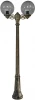 Садово-парковый фонарь FUMAGALLI серии GLOBE 300, модель GIGI/BISSO/GLOBE 300 2L. Парковый торшер, столб GIGI с двумя уличными фонарями GLOBE 300 на консолях BISSO малого размера. Используются для архитектурного и ландшафтного освещения в стиле "классика". Место установки столбиков освещения - парковые дорожки, тротуары, газоны в парках и скверах, а так же ландшафтные и архитектурные объекты. Изготовлены в Италии, по уникальным технологиям "FUMAGALLI" из современного композитного полимера RESIN. Этот материал в 5 раз прочнее металла, не ржавеет, не окисляется, не выгорает на солнце, его не нужно красить. Все светильники пыле-влаго защищены по стандарту IP65 (Пыленепроницаемые, защита от водяных струй с любого направления). В комплекте идут крепежи и закладные элементы. Рассеиватель выполнен из антивандального, не мутнеющего и не горючего PMMA (ПолиМетилМетаАкрилат). Срок службы светильника - не менее 20 лет. Температура использования от -60 до +90. В серии GLOBE 300 есть фонари в настенном (BISSO/GLOBE 300, OFIR/GLOBE 300, MIRRA/GLOBE 300, PORPORA/GLOBE 300) подвесном (SICHEM/GLOBE 300) и наземном исполнении (IAFAET.R/GLOBE 300, MIZAR.R/GLOBE 300, ARTU/GLOBE 300, MIZAR.R/GLOBE 300, GIGI/GLOBE 300, RICU/ISSO/GLOBE 3002L, NEBO/GLOBE 300, NEBO OFIR/GLOBE 300 2L, NEBO OFIR/GLOBE 300 3L, TABOR ADAM/GLOBE 300 1L, TABOR ADAM/GLOBE 300 2L, TABOR OFIR/GLOBE 300 3L) со столбами разной высоты, с разным количеством и конфигурацией голов. Консоли настенных фонарей и кронштейны светильников на столбах освщения могут устанавливаться вверх/вниз. Столбы выше 150 см имеют в основе мощную стальную трубу с двойной оцинковкой. При заказе требуется выбрать цвет корпуса, цвет плафона и тип патрона. По стилю и дизайну серия уличных светильников GLOBE 300 похожа на светильники большого размера GLOBE 400 и на светильники малого размера GLOBE 250. Тип крепления: Анкерная закладная ТИП "B" (3 закладных детали, рамка, гайки, декоративные колпачки). В комплекте филаментовые светодиодные лампочки "FUMAGALLI" яркостью 800 L. m