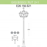Садовые светильники - столбы FUMAGALLI серии GLOBE RUT, модель RUT /GIGI/BISSO 2+1. Парковый торшер, столб GIGI с двумя уличными фонарями RUT на двух малых консолях BISSO и одним светильником на опоре. По форме напоминае "трезубец". Используются для архитектурного и ландшафтного освещения в стиле "классика". Место установки столбиков освещения - парковые дорожки, cкверы, садовые участки, тротуары, а так же ландшафтные и архитектурные объекты. Могут устанавливаться и внутри помещений в качестве декоративных уличных фонарей. Изготовлены в Италии, по уникальным технологиям "FUMAGALLI" из современного композитного полимера RESIN. Этот материал в 5 раз прочнее металла, не ржавеет, не окисляется, не выгорает на солнце, его не нужно красить. Все светильники пыле-влаго защищены по стандарту IP55 (Пылезащищенные, защита от водяных струй с любого направления). Рассеиватель выполнен из антивандального, не мутнеющего и не горючего PMMA (ПолиМетилМетаАкрилат). Срок службы светильника - не менее 20 лет. Температура использования от +60 до -90. В серии GLOBE 300 есть фонари в настенном (BISSO/ RUT, OFIR/ RUT, MIRRA/ RUT, PORPORA/ RUT) подвесном (SICHEM/ RUT) и наземном исполнении (MINILOT/ RUT, MIZAR.R/ RUT, IAFAET.R/ RUT, ALOE.R/ RUT, ARTU/ RUT, GIGI/ RUT, RICU/ RUT, RICU/ISSO/ RUT 2L, NEBO/ RUT, NEBO OFIR/ RUT 2L, NEBO OFIR/ RUT 3L) со столбами разной высоты, с разным количеством и конфигурацией голов. Консоли настенных фонарей и кронштейны светильников на столбах освщения могут устанавливаться вверх/вниз. Столбы выше 150 см имеют в основе мощную стальную трубу с двойной оцинковкой. При заказе требуется выбрать цвет корпуса, цвет плафона и тип патрона. По стилю и дизайну серия уличных светильников RUT похожа на светильники малого размера серии ANNA и на светильники большого размера серии NOEMI.