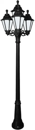 Садовые светильники - столбы FUMAGALLI серии GLOBE RUT, модель RUT /GIGI/BISSO 3+1. Парковый торшер, столб GIGI с тремя уличными фонарями RUT на двух малых консолях BISSO и одним светильником по центру, на опоре. Используются для архитектурного и ландшафтного освещения в стиле "классика". Место установки столбиков освещения - парковые дорожки, cкверы, садовые участки, тротуары, а так же ландшафтные и архитектурные объекты. Могут устанавливаться и внутри помещений в качестве декоративных уличных фонарей. Изготовлены в Италии, по уникальным технологиям "FUMAGALLI" из современного композитного полимера RESIN. Этот материал в 5 раз прочнее металла, не ржавеет, не окисляется, не выгорает на солнце, его не нужно красить. Все светильники пыле-влаго защищены по стандарту IP55 (Пылезащищенные, защита от водяных струй с любого направления). Рассеиватель выполнен из антивандального, не мутнеющего и не горючего PMMA (ПолиМетилМетаАкрилат). Срок службы светильника - не менее 20 лет. Температура использования от +60 до -90. В серии GLOBE 300 есть фонари в настенном (BISSO/ RUT, OFIR/ RUT, MIRRA/ RUT, PORPORA/ RUT) подвесном (SICHEM/ RUT) и наземном исполнении (MINILOT/ RUT, MIZAR.R/ RUT, IAFAET.R/ RUT, ALOE.R/ RUT, ARTU/ RUT, GIGI/ RUT, RICU/ RUT, RICU/ISSO/ RUT 2L, NEBO/ RUT, NEBO OFIR/ RUT 2L, NEBO OFIR/ RUT 3L) со столбами разной высоты, с разным количеством и конфигурацией голов. Консоли настенных фонарей и кронштейны светильников на столбах освщения могут устанавливаться вверх/вниз. Столбы выше 150 см имеют в основе мощную стальную трубу с двойной оцинковкой. При заказе требуется выбрать цвет корпуса, цвет плафона и тип патрона. По стилю и дизайну серия уличных светильников RUT похожа на светильники малого размера серии ANNA и на светильники большого размера серии NOEMI.