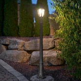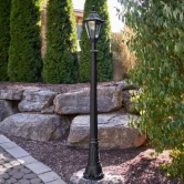 Садовые светильники - столбы FUMAGALLI серии RUT, модель RUT,/ARTU. Парковый торшер, столб ARTU с одним уличным фонарем RUT,. Используются для архитектурного и ландшафтного освещения в стиле "классика". Место установки столбиков освещения - парковые дорожки, тротуары, газоны в парках и скверах, а так же ландшафтные и архитектурные объекты. Изготовлены в Италии, по уникальным технологиям "FUMAGALLI" из современного композитного полимера RESIN. Этот материал в 5 раз прочнее металла, не ржавеет, не окисляется, не выгорает на солнце, его не нужно красить. Все светильники пыле-влаго защищены по стандарту IP55 (Пылезащищенные, защита от водяных струй с любого направления). Рассеиватель выполнен из антивандального, не мутнеющего и не горючего PMMA (ПолиМетилМетаАкрилат). Срок службы светильника - не менее 20 лет. Температура использования от +60 до -90. В серии GLOBE 300 есть фонари в настенном (BISSO/ RUT, OFIR/ RUT, MIRRA/ RUT, PORPORA/ RUT) подвесном (SICHEM/ RUT) и наземном исполнении (MINILOT/ RUT, MIZAR.R/ RUT, IAFAET.R/ RUT, ALOE.R/ RUT, ARTU/ RUT, GIGI/ RUT, RICU/ RUT, RICU/ISSO/ RUT 2L, NEBO/ RUT, NEBO OFIR/ RUT 2L, NEBO OFIR/ RUT 3L) со столбами разной высоты, с разным количеством и конфигурацией голов. Консоли настенных фонарей и кронштейны светильников на столбах освщения могут устанавливаться вверх/вниз. Столбы выше 150 см имеют в основе мощную стальную трубу с двойной оцинковкой. При заказе требуется выбрать цвет корпуса, цвет плафона и тип патрона. По стилю и дизайну серия уличных светильников RUT похожа на светильники малого размера серии ANNA и на светильники большого размера серии NOEMI. По размеру RUT относится к средним светильникам как серия CEFA, SALEM и GLOBE 300.