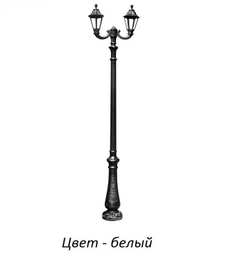 Парковые фонари FUMAGALLI серии RUT, модель NEBO/OFIR/ RUT 2L. Парковый столб NEBO с двумя фонарями RUT (среднего размера) расположенными на консолях освещения OFIR "вверх" или "вниз". Используются для архитектурного и ландшафтного освещения в стиле "классика". Место установки столбов освещения - городские общественные пространства, площади, улицы, парковые дорожки, тротуары, в парках и скверах, а так же ландшафтные и архитектурные объекты. Могут использоваться при освещении больших загородных домов, котеджей, рестранов - там, где требуется "верхнее" освещение от парковых "торшеров". Изготовлены в Италии, по уникальным технологиям "FUMAGALLI" из современного композитного полимера RESIN. Этот материал в 5 раз прочнее металла, не ржавеет, не окисляется, не выгорает на солнце, его не нужно красить. Все светильники пыле-влаго защищены по стандарту IP55 (Пылезащищенные, защита от водяных струй с любого направления). Рассеиватель выполнен из антивандального, не мутнеющего и не горючего PMMA (ПолиМетилМетаАкрилат). Срок службы светильника - не менее 20 лет. Температура использования от +60 до -90. В серии GLOBE 300 есть фонари в настенном (BISSO/ RUT, OFIR/ RUT, MIRRA/ RUT, PORPORA/ RUT) подвесном (SICHEM/ RUT) и наземном исполнении (MINILOT/ RUT, MIZAR.R/ RUT, IAFAET.R/ RUT, ALOE.R/ RUT, ARTU/ RUT, GIGI/ RUT, RICU/ RUT, RICU/ISSO/ RUT 2L, NEBO/ RUT, NEBO OFIR/ RUT 2L, NEBO OFIR/ RUT 3L) со столбами разной высоты, с разным количеством и конфигурацией голов. Консоли настенных фонарей и кронштейны светильников на столбах освщения могут устанавливаться вверх/вниз. Столбы выше 150 см имеют в основе мощную стальную трубу с двойной оцинковкой. При заказе требуется выбрать цвет корпуса, цвет плафона и тип патрона. По стилю и дизайну серия уличных светильников RUT похожа на светильники малого размера серии ANNA и на светильники большого размера серии NOEMI. По размеру RUT относится к средним светильникам как серия CEFA, SALEM и GLOBE 300.